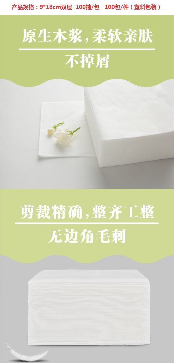 正方形小抽纸餐巾纸塑料包装批发100包大排档饭店烧烤店餐饮小吃散装小包抽纸 180*90mm 100张*2层*100包